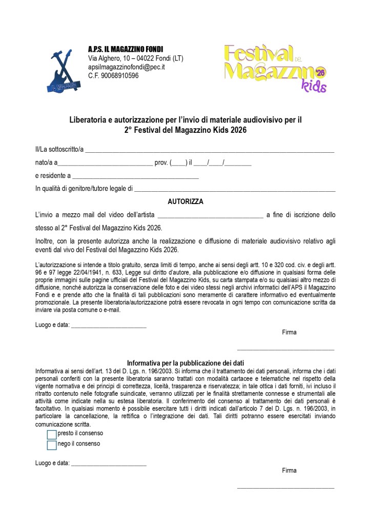Regolamento del 2° Festival del Magazzino Kids 2026