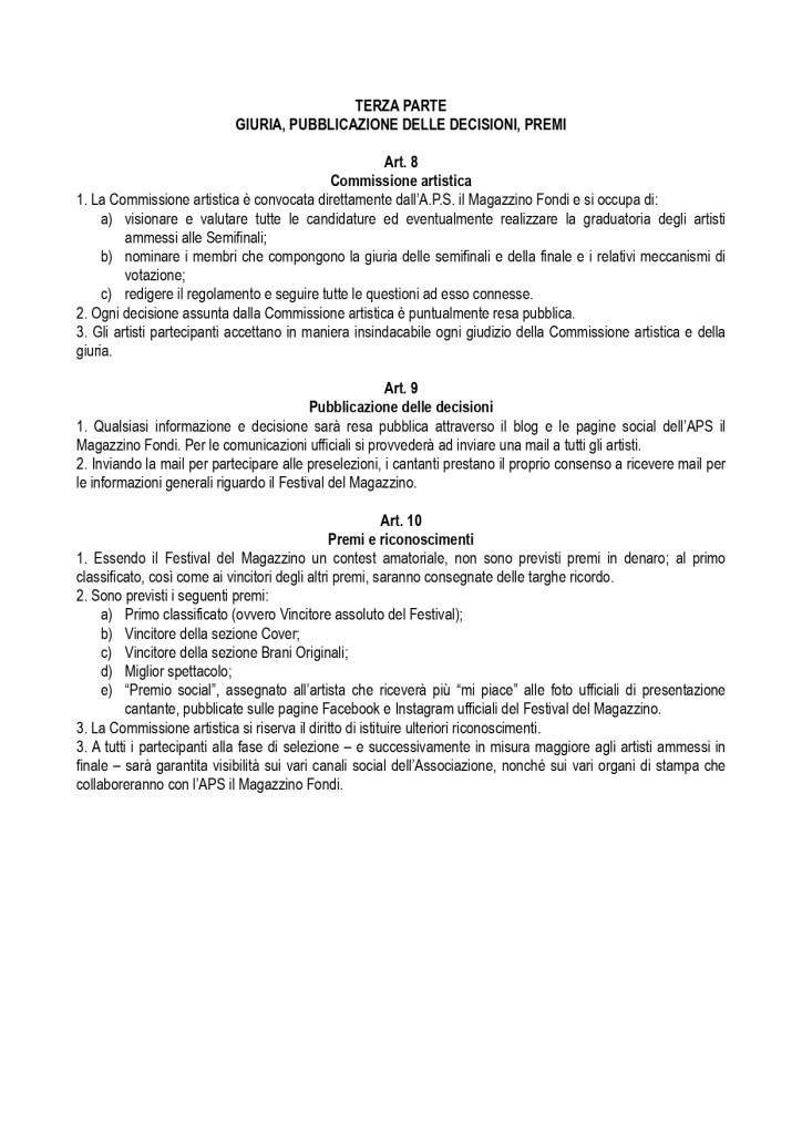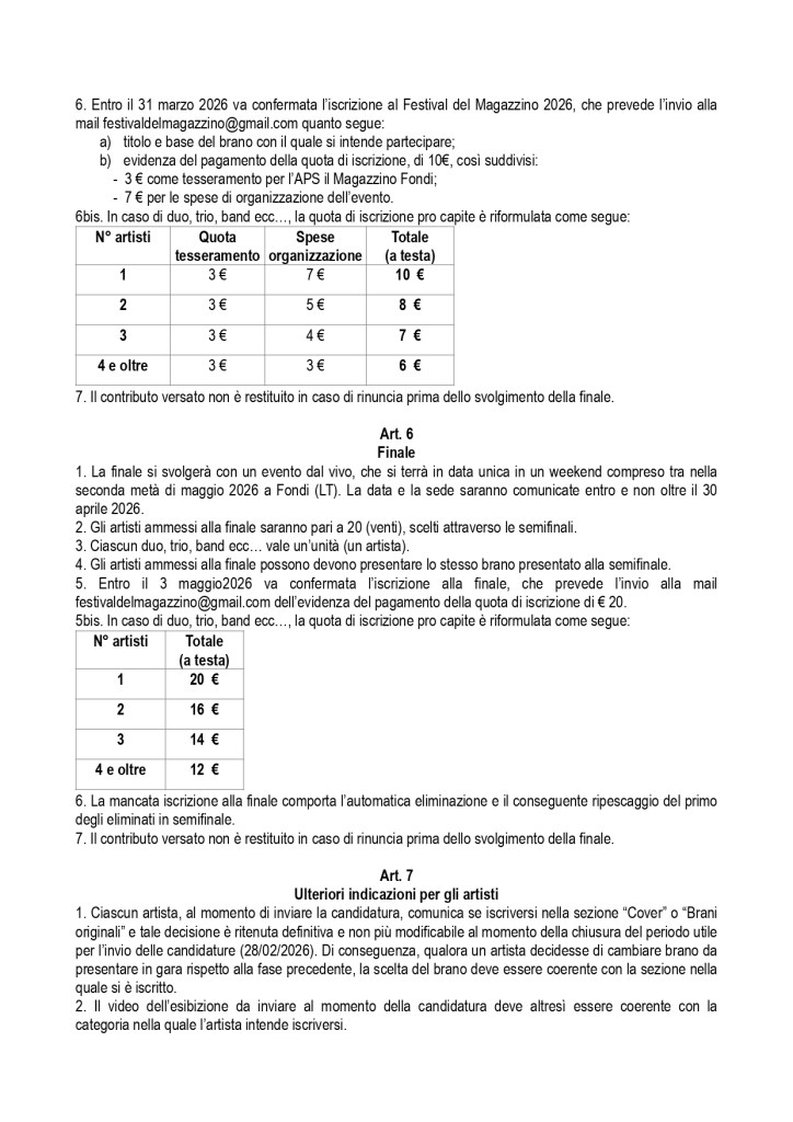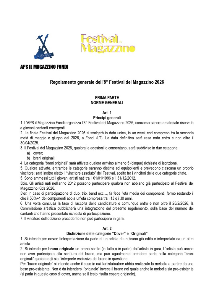 Regolamento 8° Festival del Magazzino “Giovani” 2026